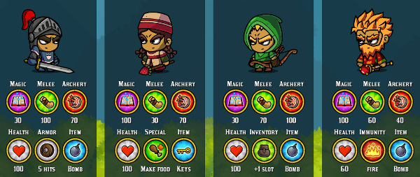 Sometimes it's best to prevent players from dying at all by allowing them to heal more often. In Son of a Witch, there's a playable healer character who can create food to heal the whole party. It's a great choice for new players and having some extra healing options can also help an experienced player when they are playing together.